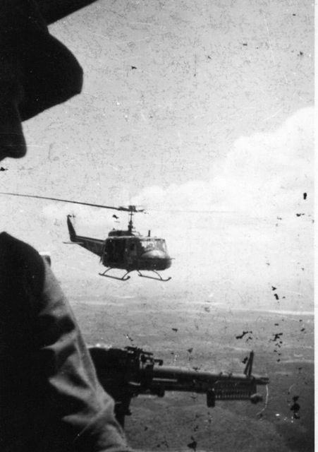 Daylight broke open a clear sky. Out fell a swoop-in cavalry rescue. For identification I popped a red smoke grenade as the pilot directed, and the Huey set into a nearby paddy. Two gunships circled and plunged like swallows, spewing suppressing firepower as we bolted to the chopper. After the flight, officers from 2nd battalion headquarters debriefed me in their cozy firebase sanctuary. One cast a larcenous glance at my trophy SKS rifle with folding bayonet. Later he stole it. I rejoined the platoon.